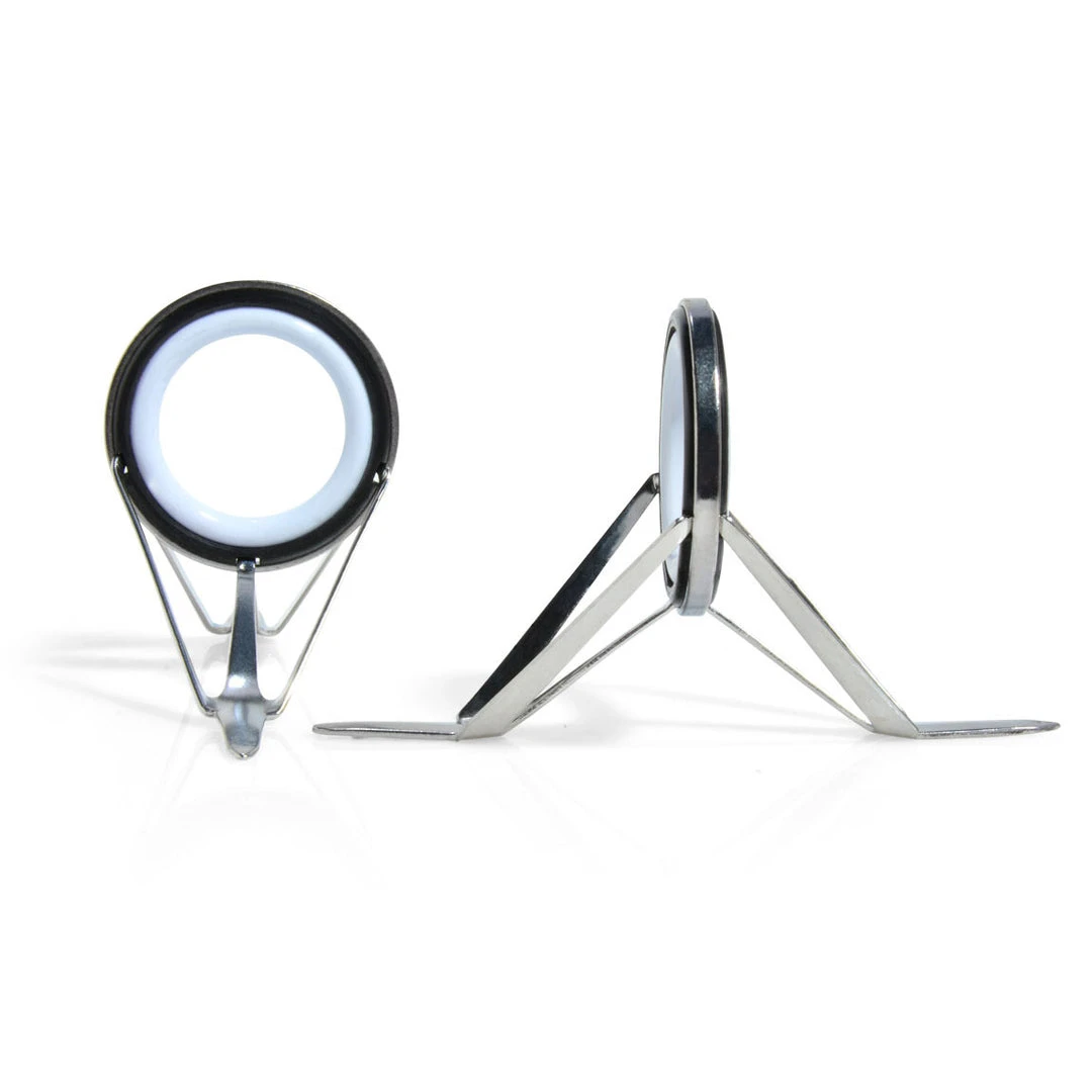 The stainless rings are double braced and have our new hard chrome plate. The CER ceramic guides have a stainless steel frame with black nylon shock ring and white ceramic ring. The CERT tip tops are chrome plated with black and white rings matching the CER guides.
