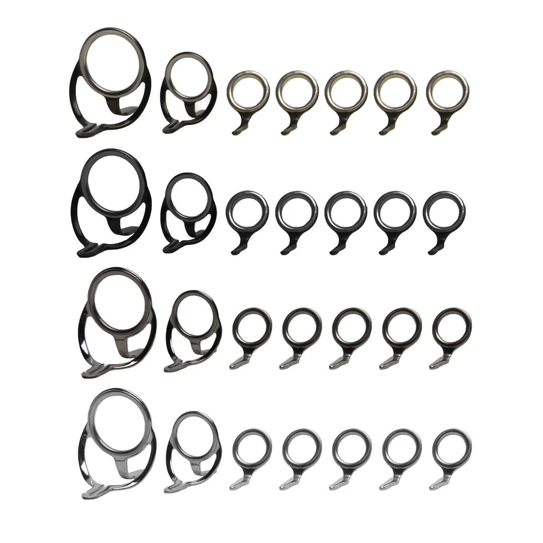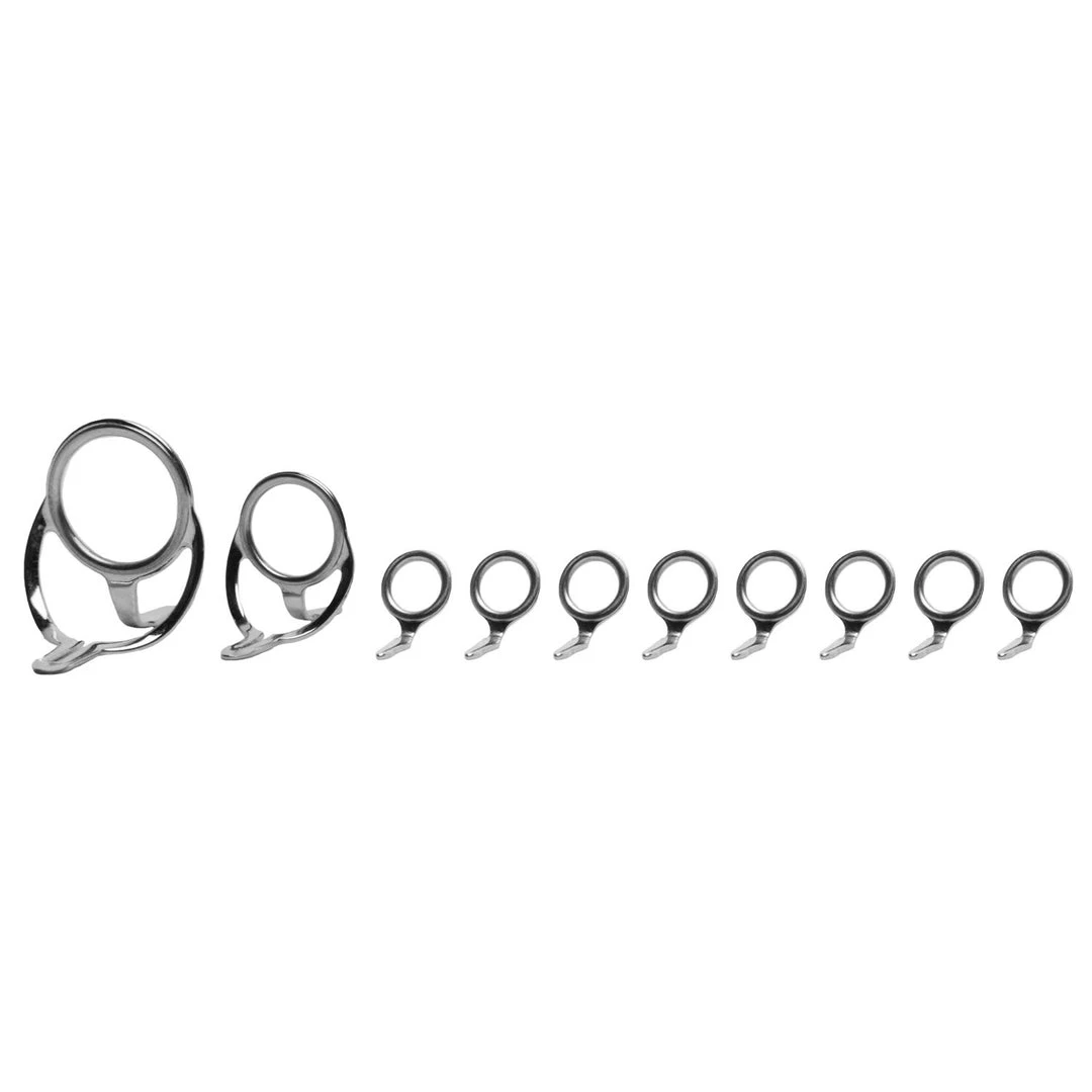 These all-purpose casting guide kits offer a rugged minimal design which greatly reduces the overall weight of the rod build. Those fishermen who spend all day blind casting will really appreciate the weight reduction. These casting guides are great for any freshwater application for bass, trout, walleye, and even bigger game like catfish and pike! They can also be used for most light saltwater (inshore and nearshore) applications, and even make excellent stripping guides for fly rod builds.