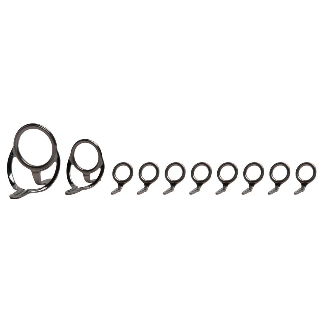 Combining affordability and value with the utmost strength and durability, the SSR Guides by CRB are engineered with stainless steel frames and a double swaged stainless steel insert rings for virtually impact proof performance. The minimal design of the SSR Guides creates a lighter overall guide train with thinner rings that produce a larger opening to easily pass leader knots and swivels without damaging fishing line, braid, or the SSR ring itself. Plus, two sleek frame finish options: polished, or black frames with polished rings.