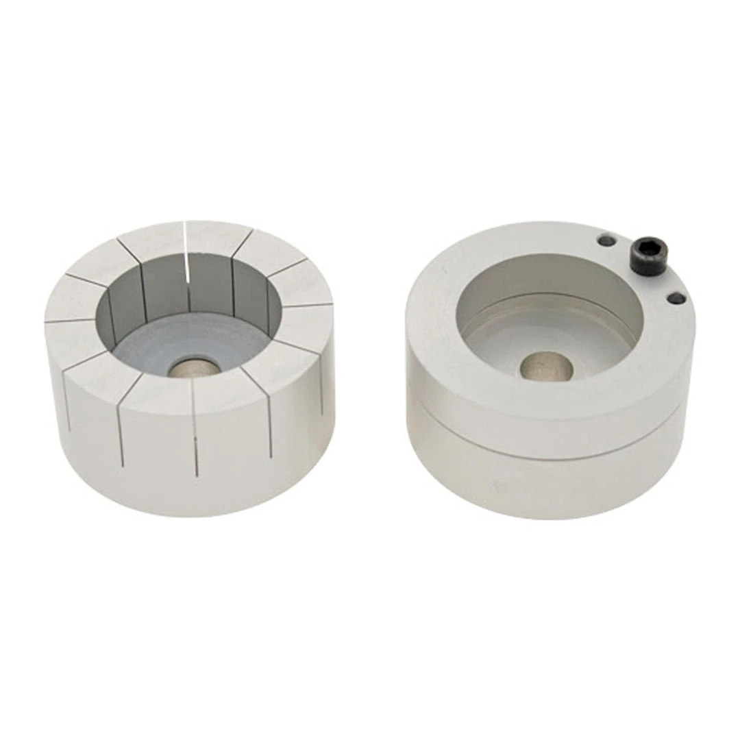 The Cork Slicer is designed to handle standard 1 1/4″ cork, burl and colored rings. The slicer is designed to cut 1/8″ slices out of the rings. In using different types of shim materials you can use it to cut the slices as thin as 1/32″. These discs make beautiful accents when added to cork of a contrasting color.