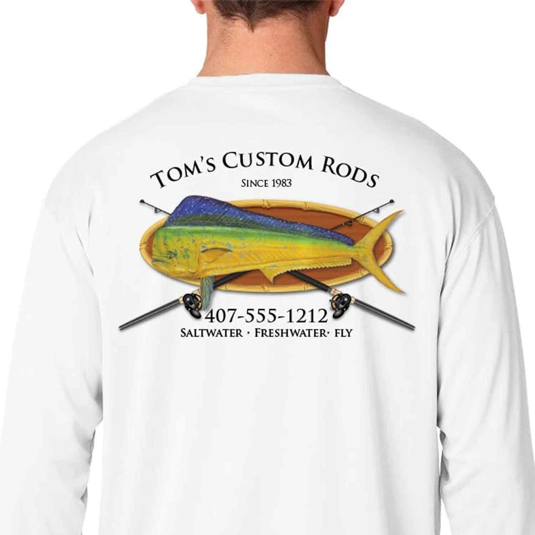 Rod Builders, here is your chance to advertise your services on the water, at home, or out on the town with these stylish new customizable t-shirts! With multiple custom templates to choose from, Mud Hole makes these shirts perfect for advertising your business! Best of all… there are NO MINIMUM ORDERS! These custom shirts are great for gifts, or as a thank-you gift to give customers with each of your custom rods! All shirts are 100% cotton.