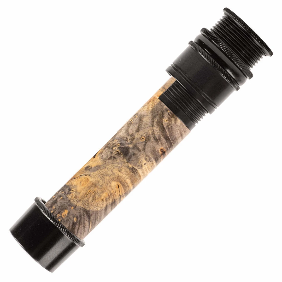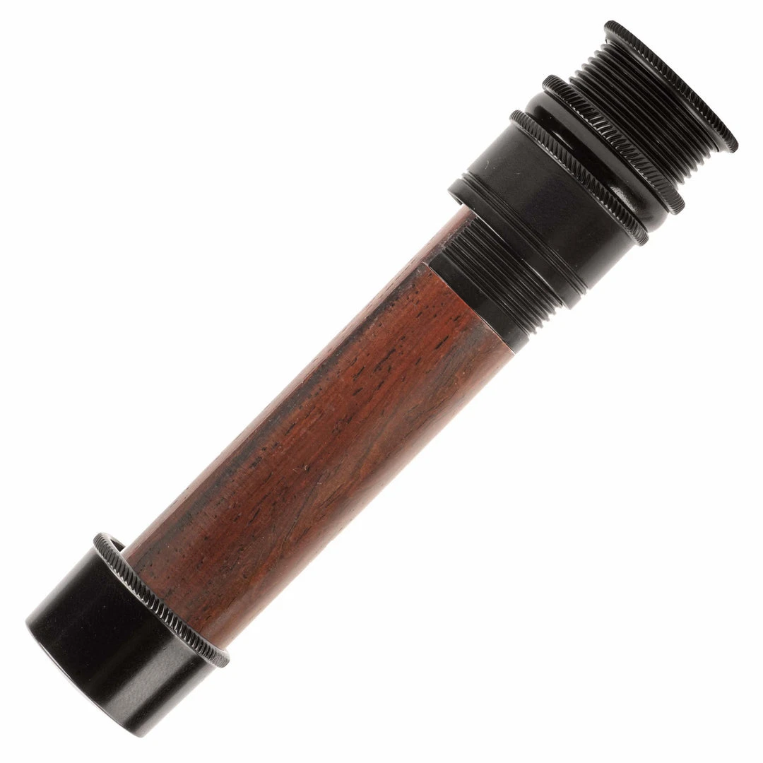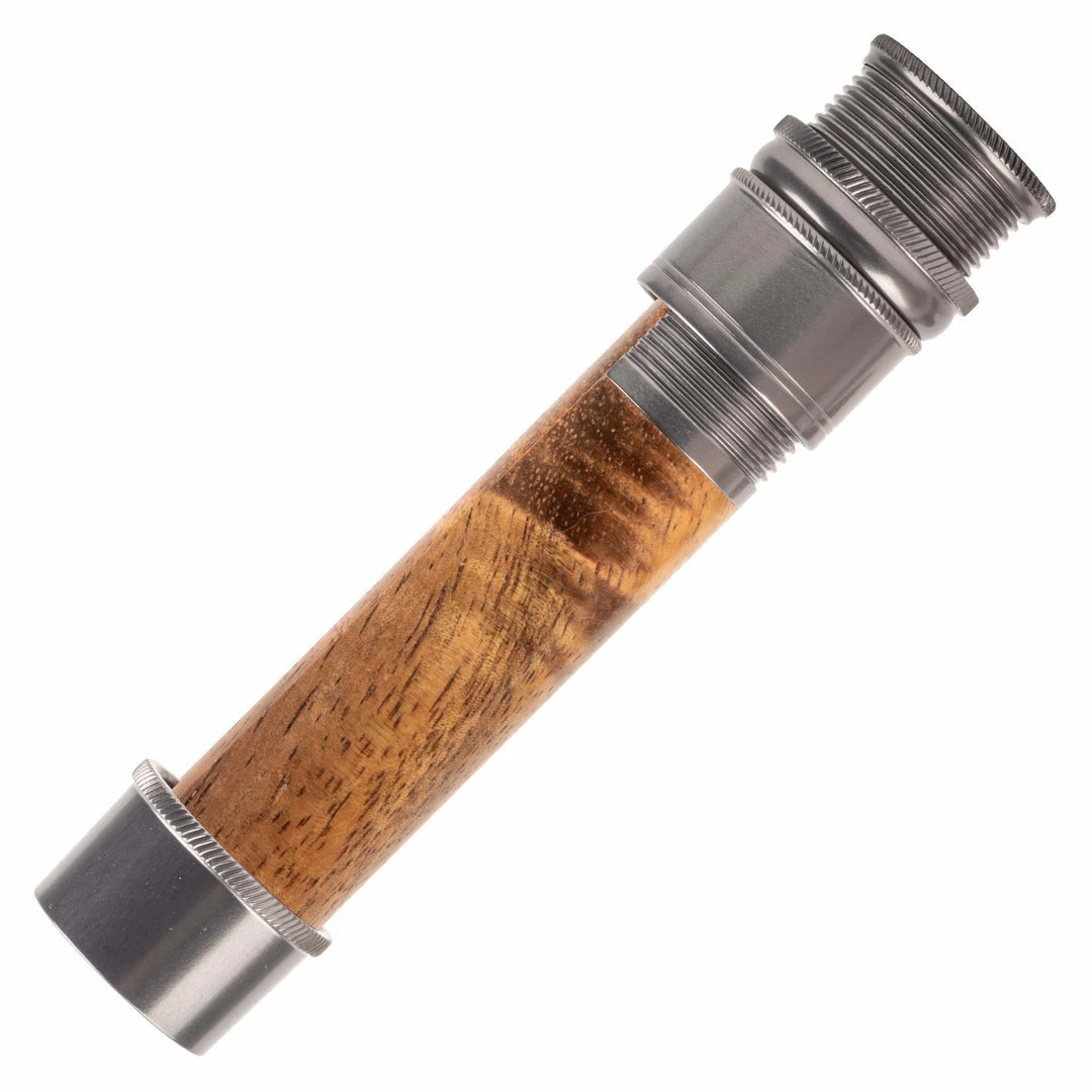 This reel seat is identical in features to the AUS except in a downlocking configuration. Fine thread, skeleton design with mortised spacer. Knurled nut, slide band, and fixed hood. Recommended for #3-7 line weight rods.