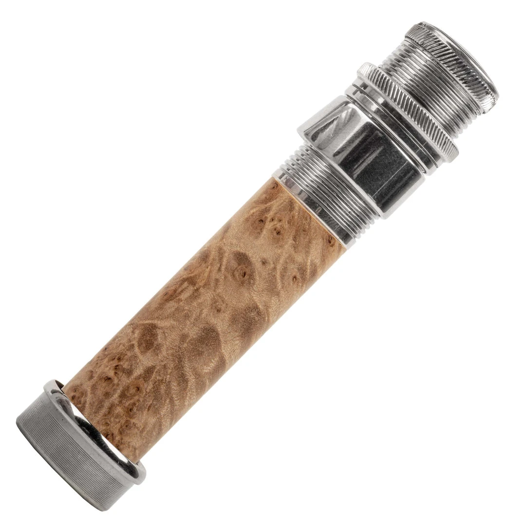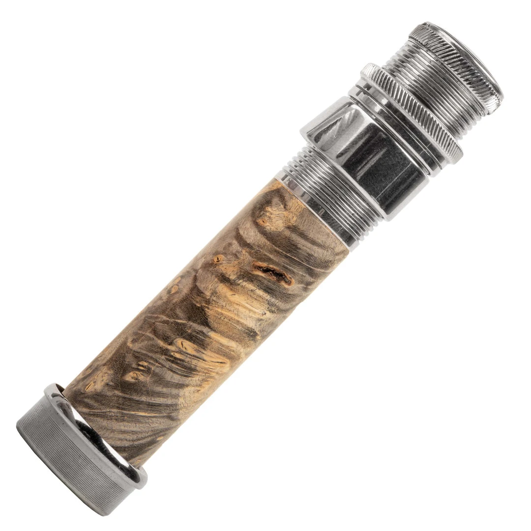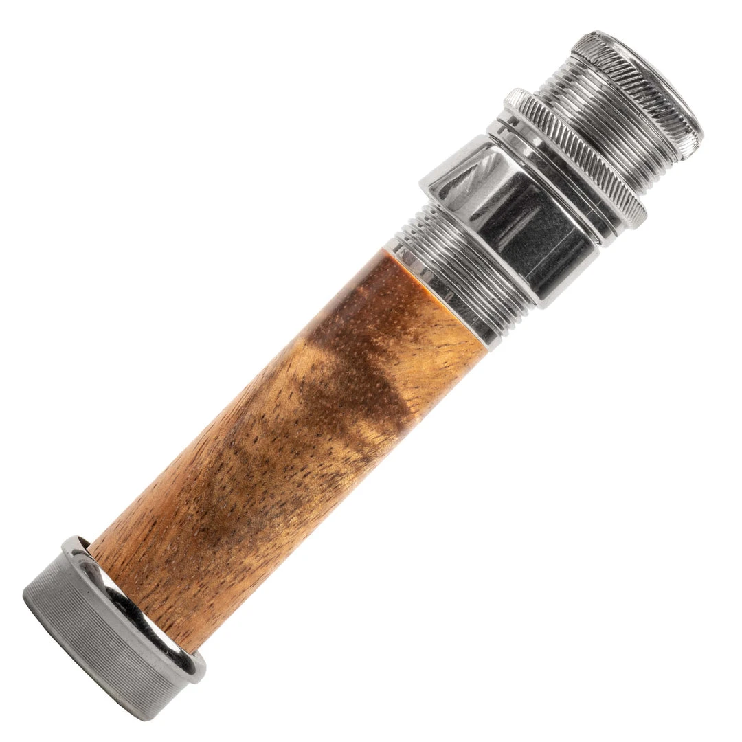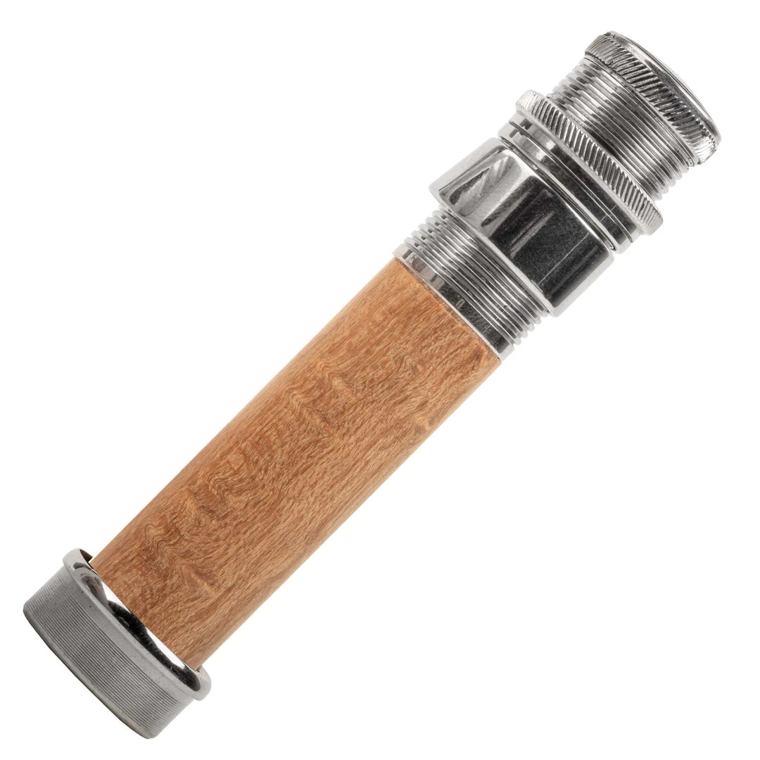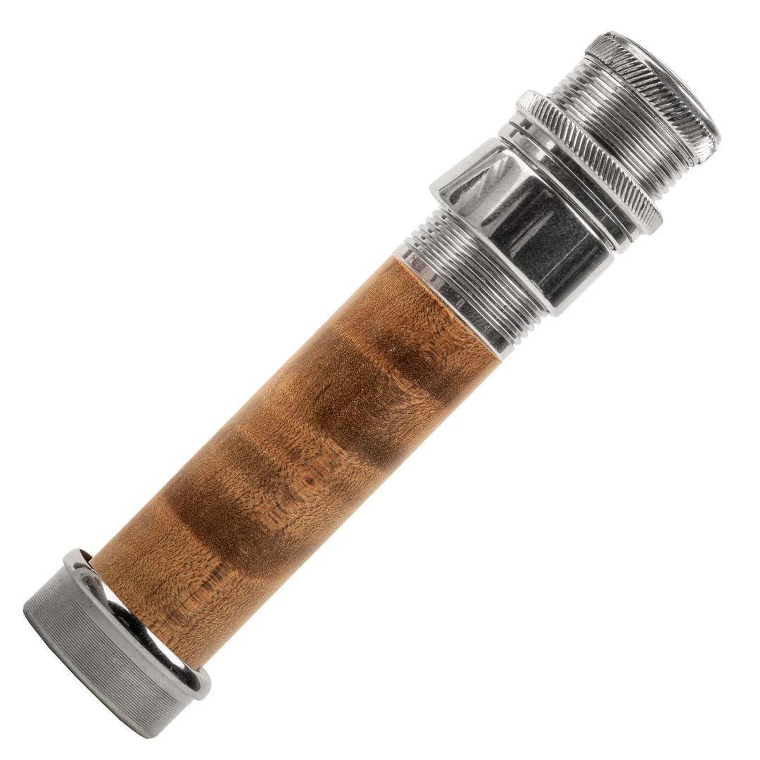 Lightweight reel seat featuring uniquely shaped milled slide, milled hood, single knurled nut with trim band. Butt cap features REC’s unique stepped design.