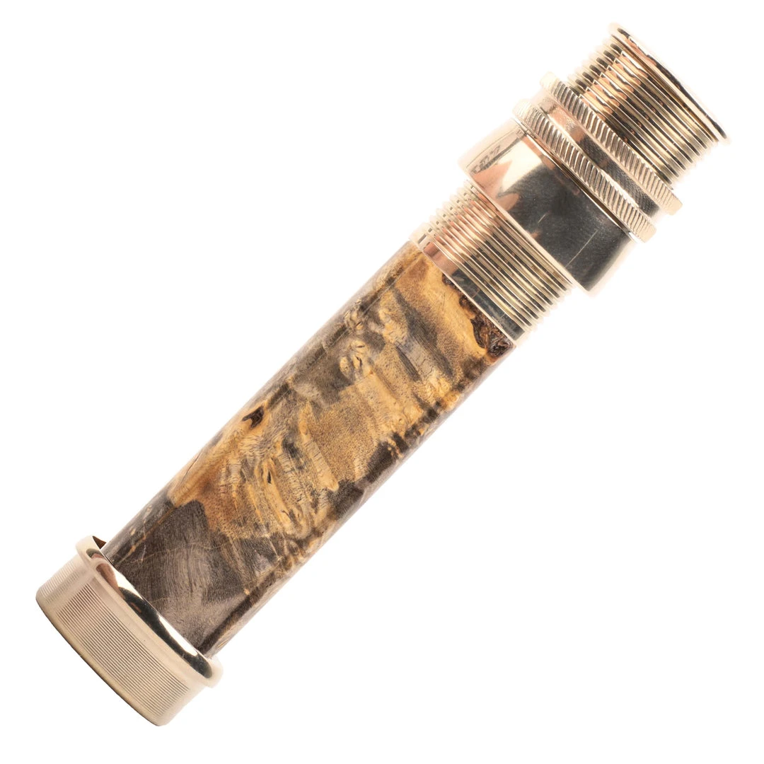 | Color | Birdseye Maple, Tiger/Fiddleback Maple, Box Elder Burl, CA Buckeye Burl, Stabilized Maple Burl, Bocote, Cocobolo, Curly Koa |